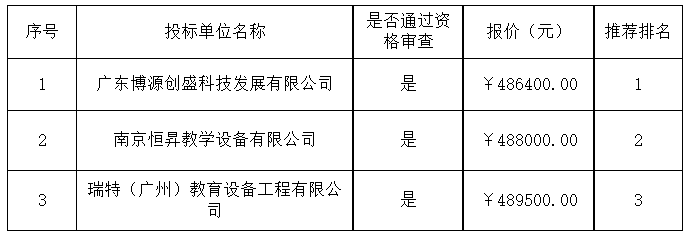 報價結(jié)果:最終詢價小組一致推薦廣東博源創(chuàng)盛科技發(fā)展有限公司為成交單位,成交金額為人民幣486400.00元(大寫金額:肆拾捌萬陸仟肆佰元整)。