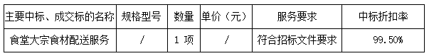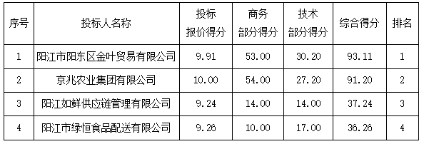 廣東業(yè)信采購(gòu)招標(biāo)有限公司受 陽(yáng)江市陽(yáng)東區(qū)華南師范大學(xué)附屬陽(yáng)東小學(xué) 的委托,于2024年12月23日就 陽(yáng)江市陽(yáng)東區(qū)華南師范大學(xué)附屬陽(yáng)東小學(xué)食堂大宗食材配送服務(wù)項(xiàng)目 (項(xiàng)目編號(hào):YXCG-20241130)采用公開(kāi)招標(biāo)方式進(jìn)行采購(gòu)。現(xiàn)就本次采購(gòu)的中標(biāo)結(jié)果公告如下: