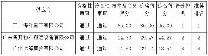 投標(biāo)結(jié)果:最終評(píng)標(biāo)委員會(huì)一致推薦三一海洋重工有限公司為中標(biāo)單位,中標(biāo)金額為人民幣2328000.00元,(大寫金額:貳佰叁拾貳萬捌仟元整)。