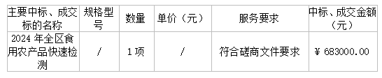 廣東業(yè)信采購招標有限公司受 陽江市市場監(jiān)督管理局陽東分局 的委托,于2024年6月11日就 陽江市市場監(jiān)督管理局陽東分局2024年全區(qū)食用農(nóng)產(chǎn)品快速檢測采購項目(項目編號:YXCG-20240520)采用競爭性磋商方式進行采購?,F(xiàn)就本次采購的成交結(jié)果公告如下: