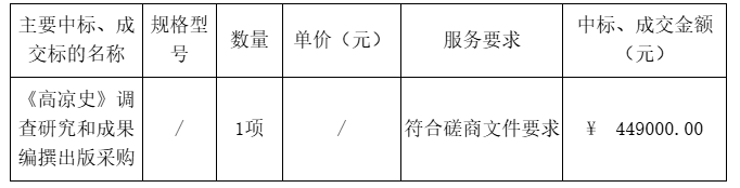 2.項(xiàng)目名稱(chēng):《高涼史》調(diào)查研究和成果編撰出版采購(gòu)項(xiàng)目
