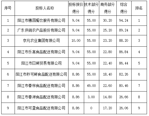 2.陽江市盛泰食品配送有限公司:投標(biāo)文件未提供有效的營業(yè)執(zhí)照(或事業(yè)法人登記證或身份證等相關(guān)證明) 副本復(fù)印件,未按招標(biāo)文件要求提供依法繳納社會(huì)保障資金的良好記錄,資格性審查不通過。