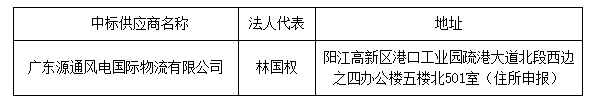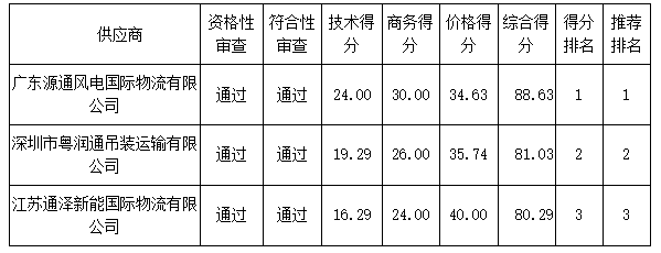 投標(biāo)結(jié)果:最終評(píng)標(biāo)委員會(huì)一致推薦 廣東源通風(fēng)電國(guó)際物流有限公司 為中標(biāo)單位,項(xiàng)目營(yíng)業(yè)額每年32000000.00元(含)以內(nèi)報(bào)價(jià)折扣率為 58.50 %,項(xiàng)目營(yíng)業(yè)額每年超過32000000.00元,超出部分的報(bào)價(jià)折扣率為 35.00 %。