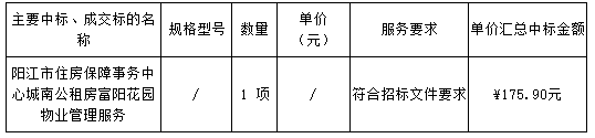 二、采購項目名稱:陽江市住房保障事務(wù)中心城南公租房富陽花園物業(yè)管理服務(wù)