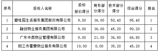 注:陽江市霍曼物業(yè)服務(wù)有限公司提供《中小微企業(yè)聲明函》,為微型企業(yè),價格扣除10%。