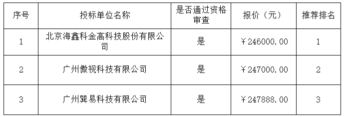 報價結(jié)果:最終詢價小組一致推薦北京海鑫科金高科技股份有限公司為成交單位,成交金額為人民幣246000.00元(大寫金額:貳拾肆萬陸仟元整)。