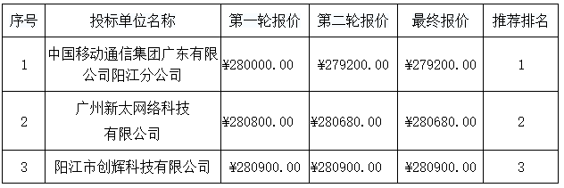 成交供應(yīng)商名稱:中國移動(dòng)通信集團(tuán)廣東有限公司陽江分公司