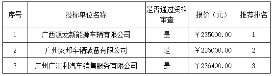 報價結(jié)果:最終詢價小組一致推薦 廣西源龍新能源車輛有限公司 為成交單位,成交金額為人民幣 235000.00 元(大寫金額: 貳拾叁萬伍仟元整 )。