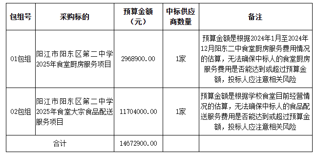 01包組:陽江市陽東區(qū)第二中學(xué)2025年食堂廚房服務(wù)項目