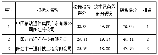 成交供應(yīng)商名稱:中國移動通信集團(tuán)廣東有限公司陽江分公司