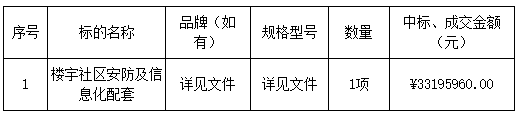 廣東業(yè)信招標(biāo)有限公司受 廣東秦川建設(shè)有限公司 的委托,于2024年12月26日就 樓宇社區(qū)安防及信息化配套項(xiàng)目 (項(xiàng)目編號:YXZB-20241220)采用公開比選方式進(jìn)行采購?,F(xiàn)就本次采購的成交結(jié)果公告如下: