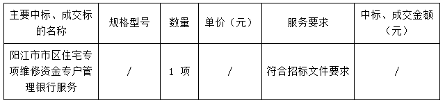 二、采購項目名稱:2025-2027年陽江市市區(qū)住宅專項維修資金專戶管理銀行服務(wù)項目