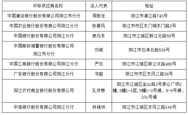 (1)中國建設(shè)銀行股份有限公司陽江市分行;