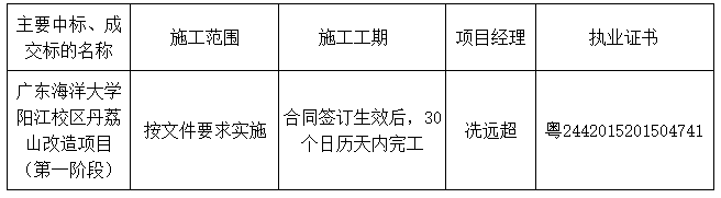 廣東業(yè)信采購(gòu)招標(biāo)有限公司受 廣東海洋大學(xué)陽(yáng)江校區(qū)管理辦公室 的委托,于2025年9月29日就 廣東海洋大學(xué)陽(yáng)江校區(qū)丹荔山改造項(xiàng)目(第一階段)(項(xiàng)目編號(hào):YXCG-20250912)采用競(jìng)爭(zhēng)性磋商方式進(jìn)行采購(gòu)。現(xiàn)就本次采購(gòu)的成交結(jié)果公告如下:
