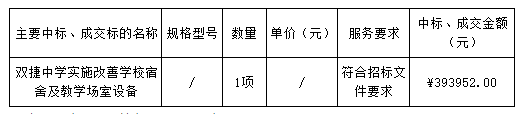 廣東業(yè)信采購招標有限公司受 陽江市江城區(qū)雙捷鎮(zhèn)雙捷中學 的委托,于2025年3月25日就 雙捷中學實施改善學校宿舍及教學場室設備項目(項目編號:YXCG-20250224)采用公開招標方式進行采購?,F就本次采購的中標結果公告如下:
