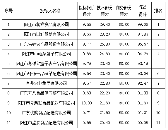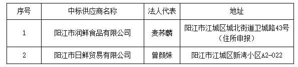 1.陽江市潤鮮食品有限公司 中標折扣率為 95.00% 。
