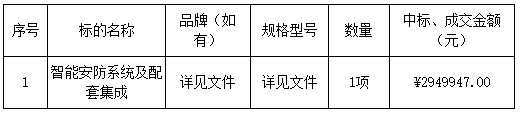 廣東業(yè)信招標(biāo)有限公司受 廣東晉峰建設(shè)工程有限公司 的委托,于2025年6月25日就 廣東晉峰建設(shè)工程有限公司智能安防系統(tǒng)及配套集成項(xiàng)目 (項(xiàng)目編號(hào):YXZB-20250617)采用公開(kāi)比選方式進(jìn)行采購(gòu)?,F(xiàn)就本次采購(gòu)的成交結(jié)果公告如下: