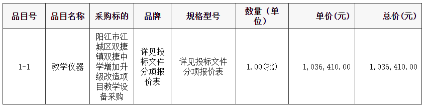 陽江市江城區(qū)雙捷鎮(zhèn)雙捷中學增加升級改造項目教學設備采購