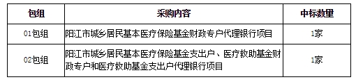 1. 項目名稱:陽江市城鄉(xiāng)居民醫(yī)療保險基金和醫(yī)療救助基金代理銀行采購項目